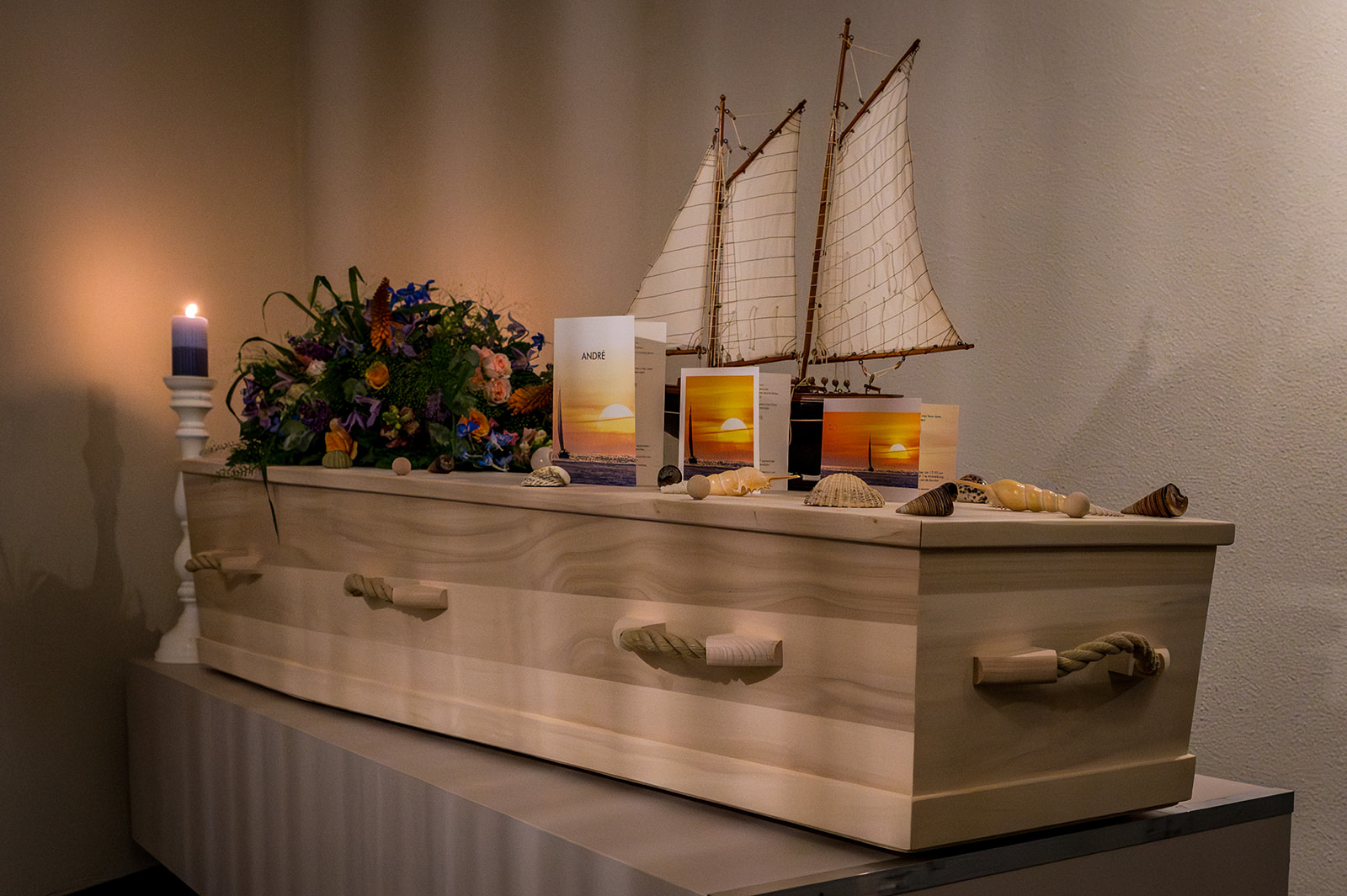 Tegenwoordig zijn er op dit gebied heel veel mogelijkheden. Een fotoprint op een kist, een rieten mand, een baar gemaakt van takken en vanzelfsprekend de nette, maar eenvoudige uitvaartkist.